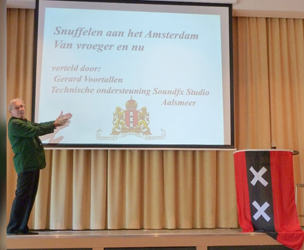 | ALV en voorstelling Snuffelen aan het Amsterdam van vroeger en nu, door: Gerard Voortallen Dit jaar weer een bijzondere ledendag! Na een korte Algemene Leden Vergadering (circa 15 minuten) volgt er een vertelvoorstelling waarin Amsterdam op een luchtige manier van verschillende kanten wordt belicht. Vele zaken komen in deze voorstelling voorbij: een stukje historie, een kroegentocht langs een aantal opmerkelijke café's, beroepen van vroeger die uit het straatbeeld zijn verdwenen, het muzikale Amsterdam, historische gebouwen met een verhaal, een wel héél komisch bezoek aan de “masseur”, de Jordaan, de standwerkers en vele andere onderwerpen. Dit alles wordt ondersteund door zowel beeld als geluid. Er is een pauze en een nazit met hapjes en drankjes en gezelligheid, tot 17.00 uur. Inloop vanaf 13.30 uur, aanmelden niet nodig. ACHV-leden gratis; swp-Leden € 2,50; Gasten € 5,00 |
